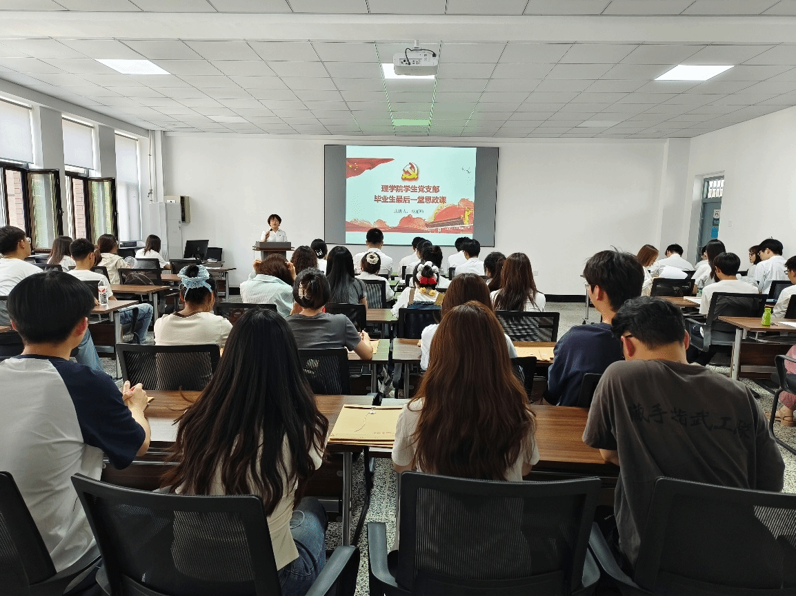6月18日,理学院在三教C418会议室举办毕业生最后一堂思政课。学院党委副书记袁丽峰以“筑牢信仰之基,把握思想之舵,在民族复兴新征程中书写青春华章”为主题授课,全体毕业生党员参加学习,共同坚定理想信念,明确新时代青年的责任与使命。