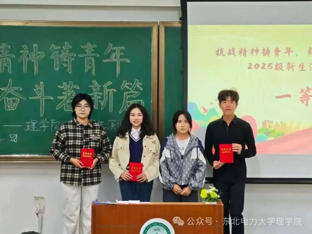 历经数轮激烈角逐,所有选手均以最佳状态完成演讲。评委团经过充分讨论与公正打分,最终确定获奖名单:实验理251颜菁瑶同学、电合251张馨方同学、电合251邹小鹏同学斩获一等奖;实验理252王艺霖同学、信计251王毓隆同学、实验理252张笑嫣同学、信计251张梦涵同学、统计251欧阳瑜蔓同学荣获二等奖;器件251田一程同学、数学251刘英杰同学、统计251张佳豪同学、器件251蔡博文同学、实验理251刘凯宁同学、数学251刘涌同学、信计252王鹤潼同学、信计252王伟丞同学获得三等奖。当获奖名单公布时,全场响起热烈如潮的掌声,既是对选手精彩表现的肯定,更是对抗战精神的致敬。